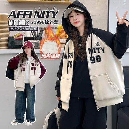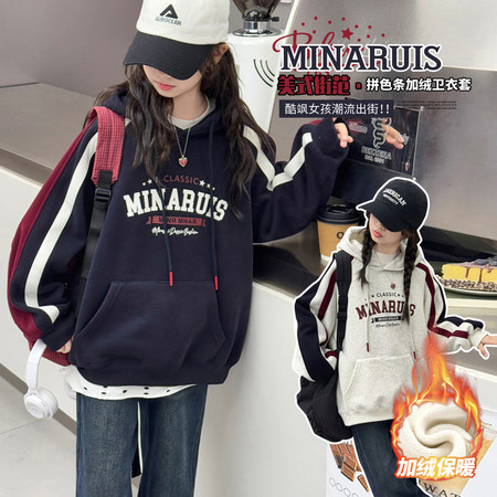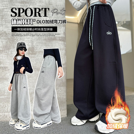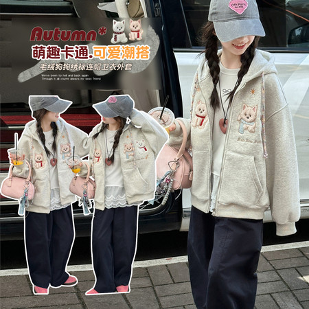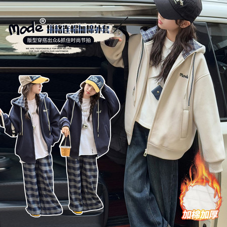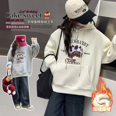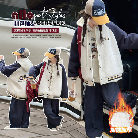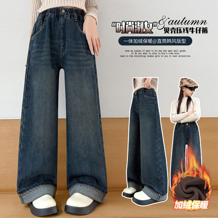 女童拉条加绒卫衣毛脚口加绒牛仔裤套装