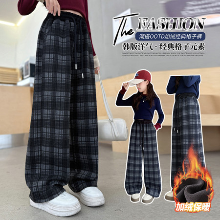 女童百搭格子加绒裤