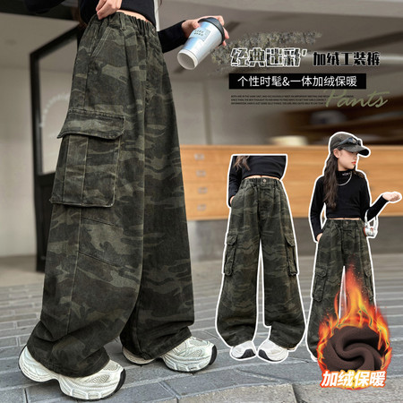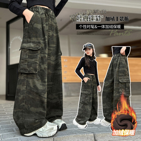 女童加绒迷彩真立体口袋工装裤